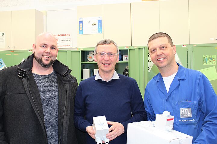 Foto 2 Ing. Markus Trauner (Kraus & Naimer), Ing. Gerhard Mayer (Werkstättenleiter, HTL St. Pölten), Dipl. Päd. Bernhard Teubenbacher, BEd (HTL St. Pölten)