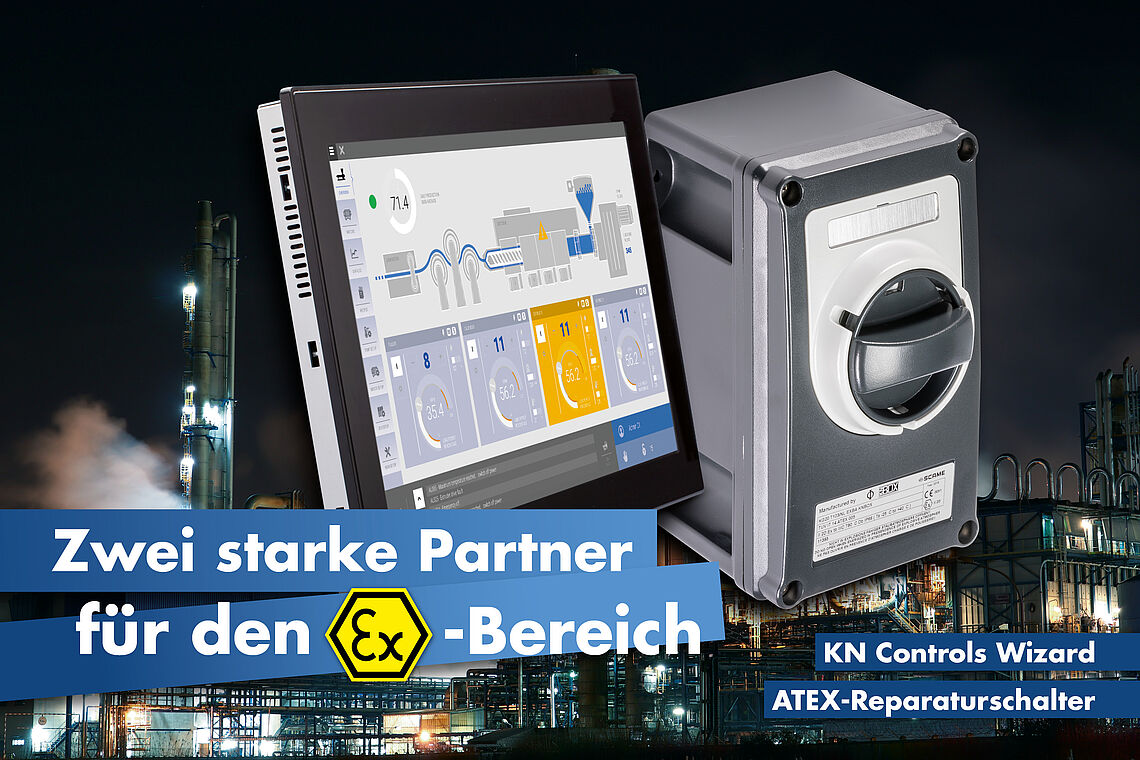 Auch das KN Controls 700 Wizard fühlt sich im Ex-Bereich zuhause. Mit der robusten Oberfläche und dem erweiterten Temperaturbereich ist das Touch-Panel für Zone 2/22 (Gerätegruppe II, Kategorie 3) zugelassen. Alle Informationen dazu können Sie unter https://www.krausnaimer.com/de_de/produkte/kn-controls-steuerung-und-hmi/kn-controls-700-wizard nachschlagen.
