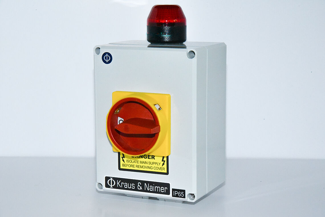 Although not part of the Kraus & Naimer standard product portfolio, this is the type of requirement that the technical sales and assembly teams are adept at providing solutions for. Utilising one of their high-quality single hole panel mounted 20Amp switches from the CA10 range, the technical team were able to source an appropriately sized polycarbonate enclosure, offering the facility to provide a hinged lid along with the requisite signalling beacon. Once the designs for the assembly were complete, including drawings of the layout of the switch and beacon in the enclosure, the job was handed over to the skilled workshop team to assemble and ship out.